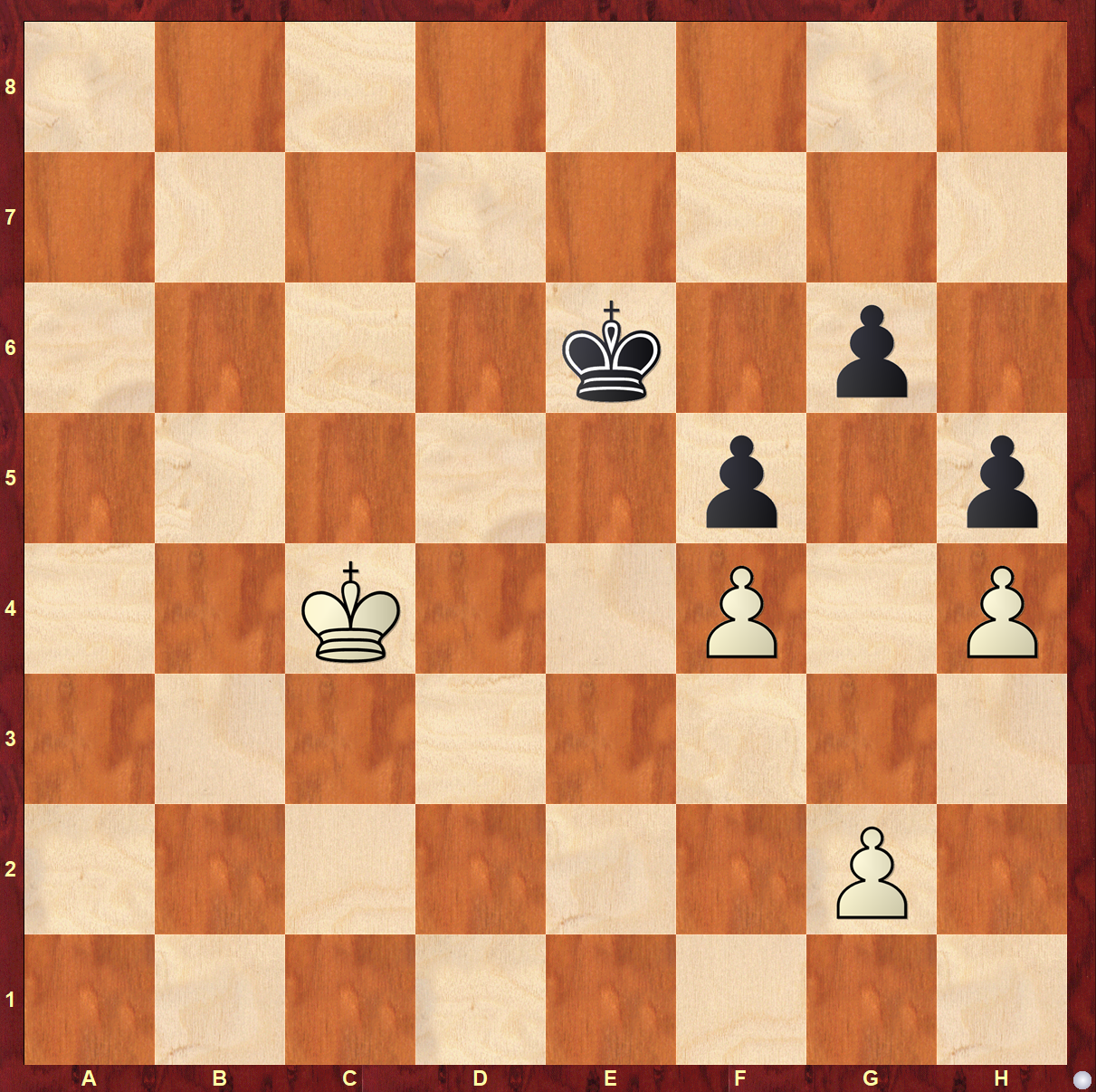 En complément de la séance d'aujourd'hui sur les finales de pions, voici un exercice relativement facile, illustrant le thème du coup de réserve. Les blancs jouent et gagnent (solution un peu plus bas).