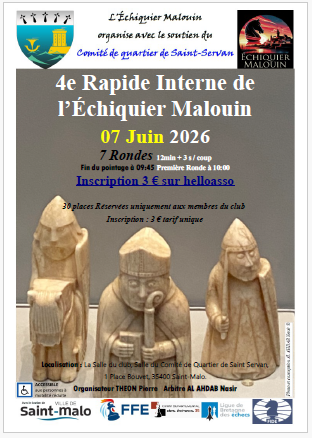 Le 4e Tournoi Interne de Parties Rapides du 07/06/2026 est annoncé